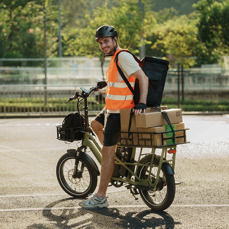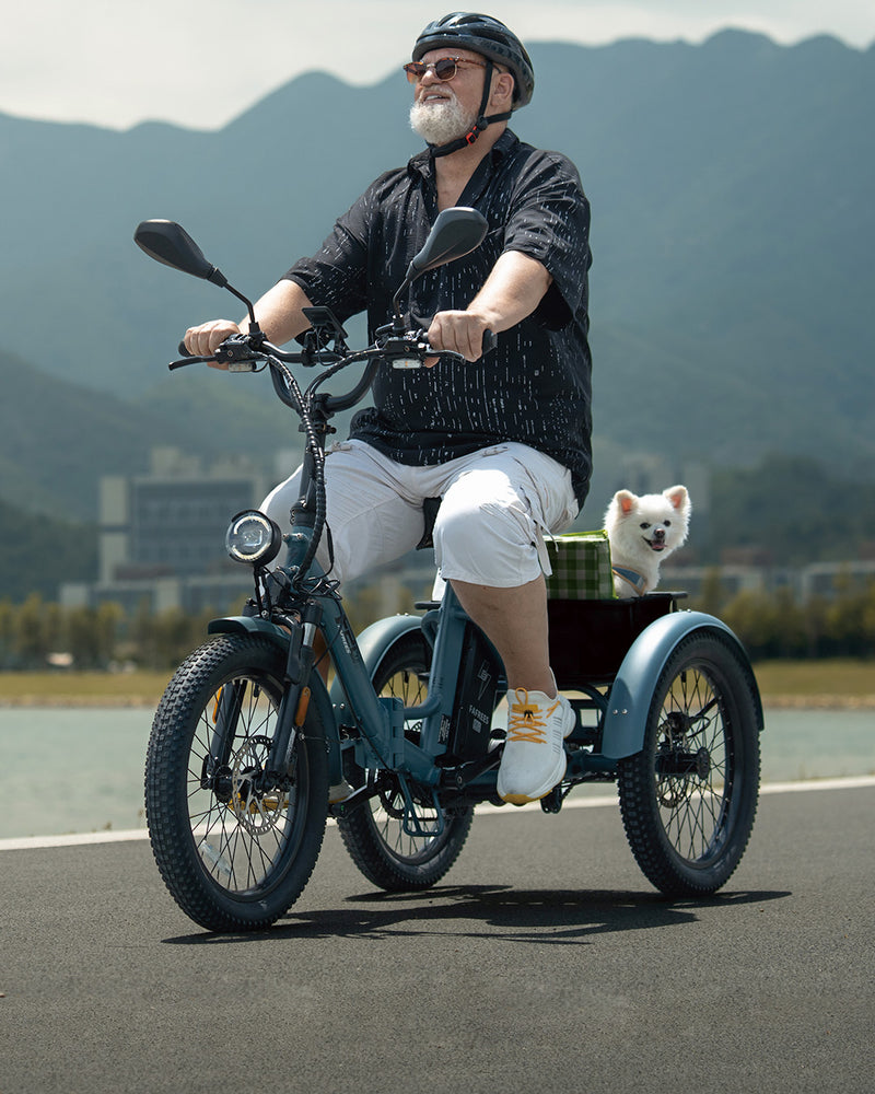 Der F20 Mate ist vollständig EU-typgeprüft (L2e-P) und für sicheres, stabiles und straßenzugelassenes Fahren gebaut. Seine dreirädrige Konstruktion, der Differentialantrieb und das dreifache Bremssystem sorgen für eine reibungslose Kontrolle auf den täglichen Strecken.