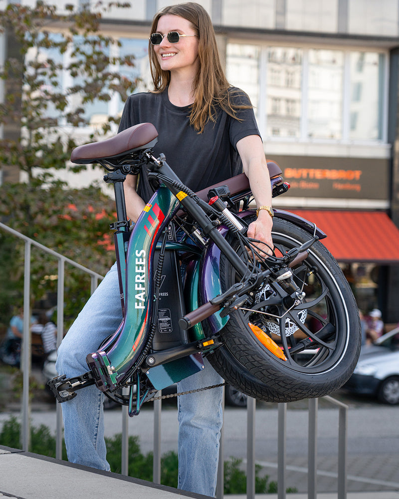 Das FF20 Polar lässt sich schnell falten und fährt schneller. Es ist als e-bike mit 45 km/h zertifiziert und eignet sich perfekt für Pendler, die hohe Geschwindigkeit und kompaktes Design benötigen. Mit zwei Akkus und eingebauten Sicherheitsfunktionen ist es die Freiheit, die zu Ihrem Leben passt.
