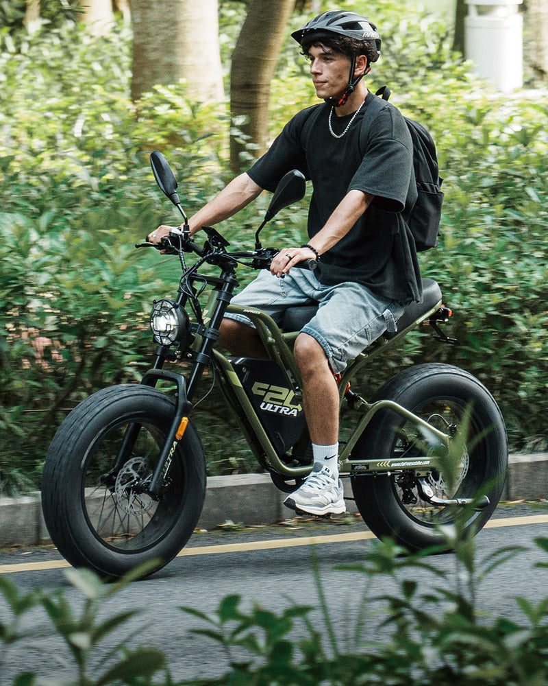 Das F20 Ultra kombiniert 45 km/h Hochgeschwindigkeitsleistung mit einem vom Motorradsport inspirierten Styling. Es hat eine EU-Typgenehmigung (L1e-B) und ist mit hydraulischen Bremsen, einer erweiterten Reichweite und einem beeindruckenden Rahmen ausgestattet - es ist dafür gemacht, schnell und stolz zu fahren, und das alles im Rahmen der Gesetze.