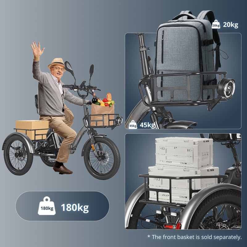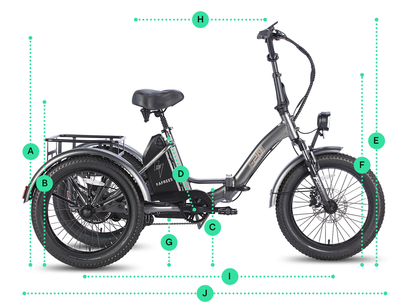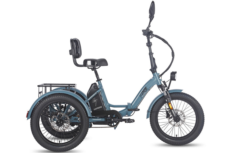 Straßenzugelassen, dreifach sicher. Das F20 Mate bietet Ihnen die Kraft eines 500-Watt-Motors, den Grip fetter Reifen und die Stabilität von drei Rädern. Dreifach-Bremsen und eine komplette Sicherheitsausrüstung (Signale, Hupe, Spiegel) sorgen für eine sichere, vorschriftsmäßige Fahrt mit bis zu 30 km/h.