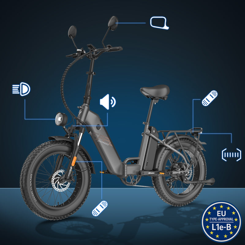 Dieses e-bike ist nach der EU-Verordnung 168/2013 (L2e-P) zertifiziert und verfügt über eine vollständige CoC-Dokumentation und E-Mark-konforme Komponenten. Es unterstützt Geschwindigkeiten von bis zu 30 km/h und ist für Fahrer ab 16 Jahren geeignet, die einen gültigen Führerschein der Klasse AM oder B besitzen.Nach der Registrierung fahren Sie bitte auf ausgewiesenen Straßen gemäß den örtlichen Gesetzen und tragen zu Ihrer Sicherheit einen zertifizierten Schutzhelm.