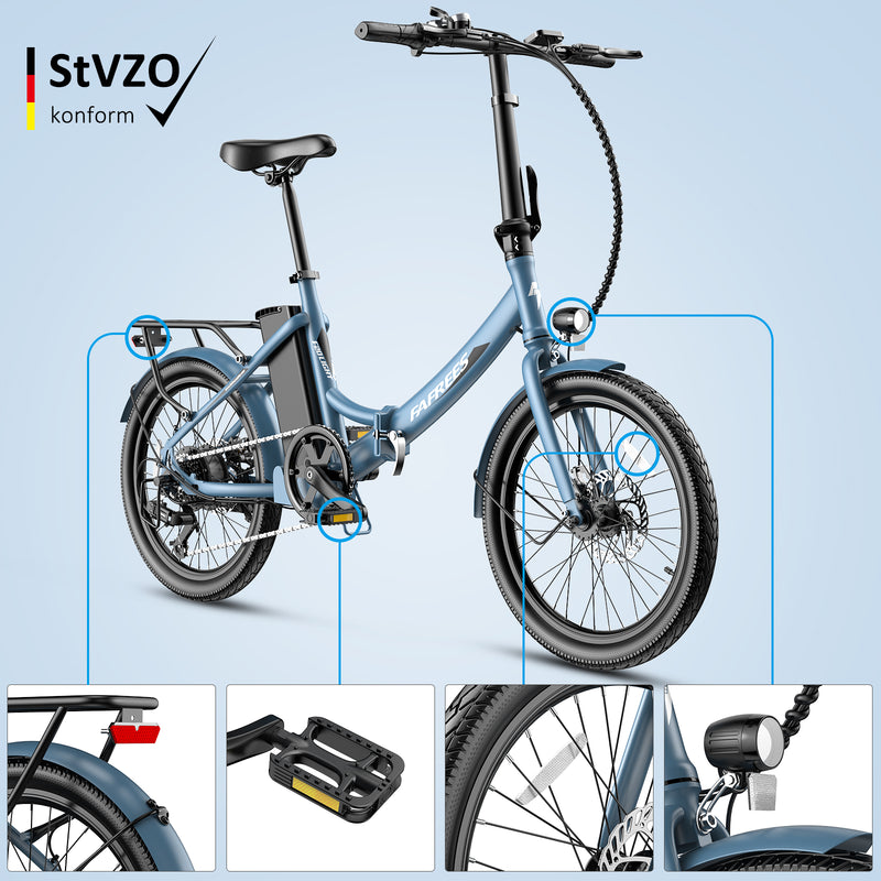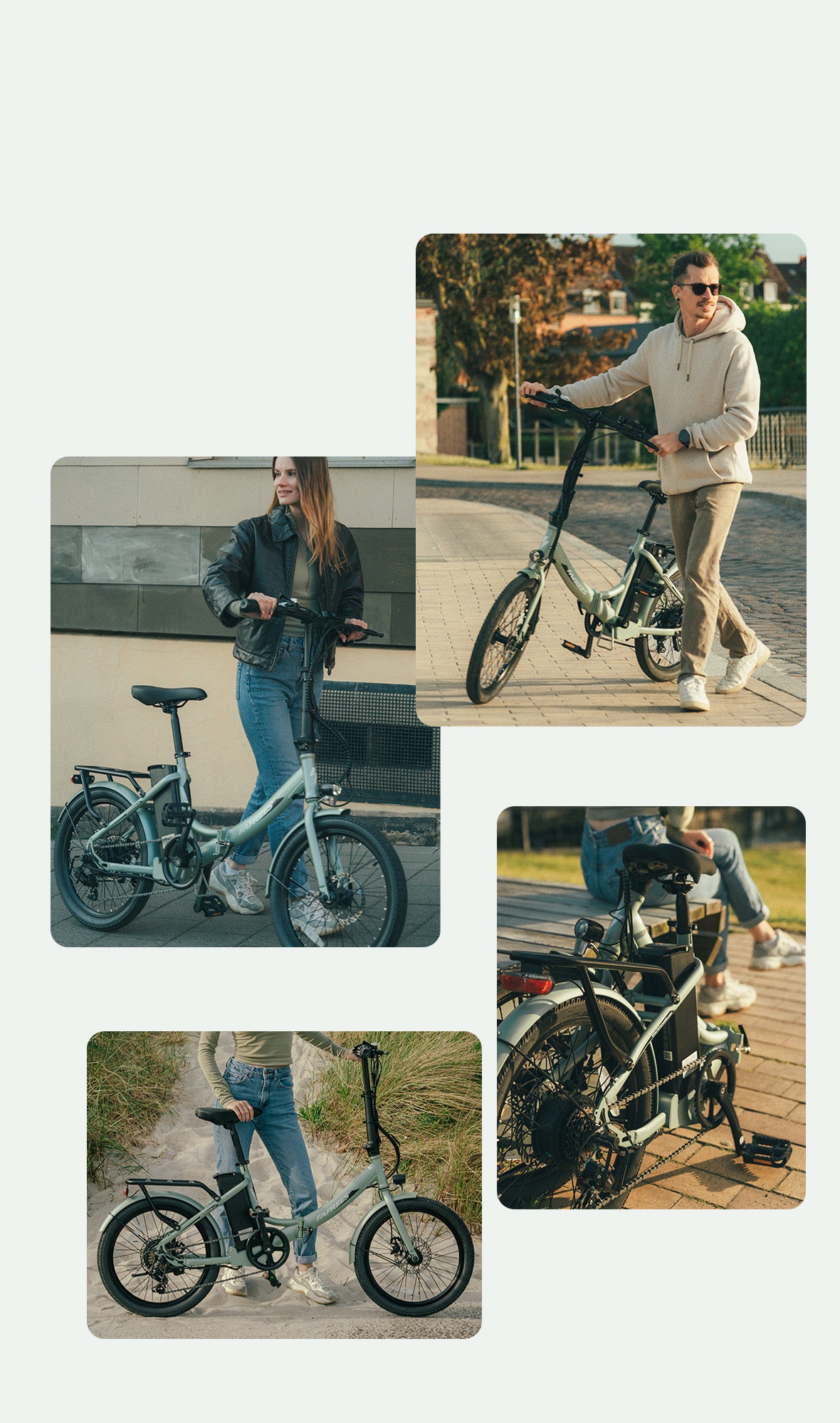 Das kompakte und vielseitige F20 Light Light verfügt über einen 250-Watt-Motor, einen großen 16,75-Ah-Akku, 20-Zoll-Reifen und einen faltbaren Durchstiegsrahmen. Ideal für alltägliche Fahrten in der Stadt und familienfreundliche Transporte.