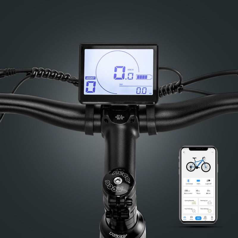 LCD-Display mit App-Synchronisierung: Bleiben Sie in Verbindung mit einem mittig angebrachten Farbdisplay, das Echtzeit-Statistiken anzeigt, Telefon-Synchronisierung und einen USB-Anschluss, damit Sie auch unterwegs mit Strom versorgt sind.