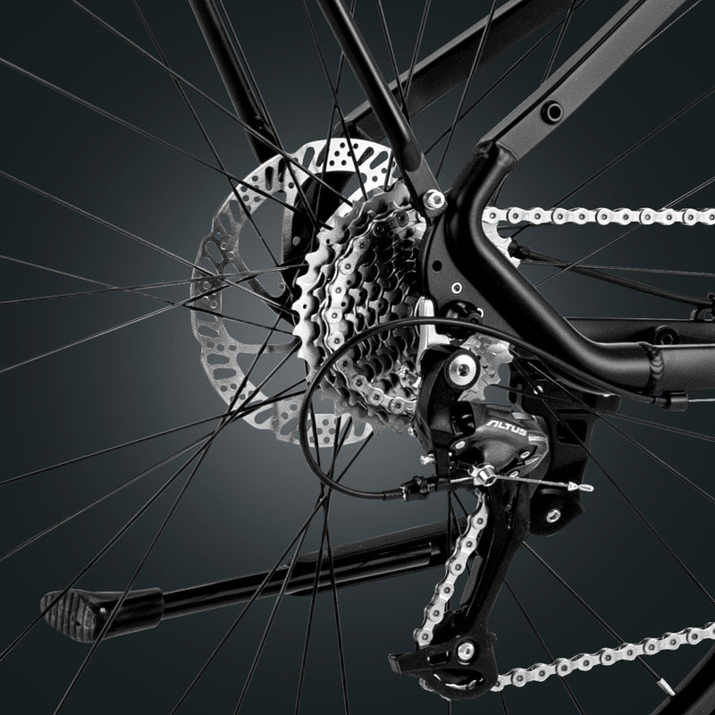 Shimano 9-Gang: Präzises Schalten mit Shimanos 9-Gang-System, das weiche, zuverlässige Übergänge in unterschiedlichem Terrain bietet.
