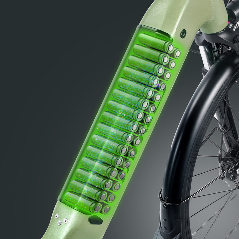 Integrierte 15-Ah-Batterie: Elegant versteckt und leicht zu entfernen, bietet sie eine Reichweite von bis zu 120 km für tägliche Fahrten und Wochenendausflüge gleichermaßen.