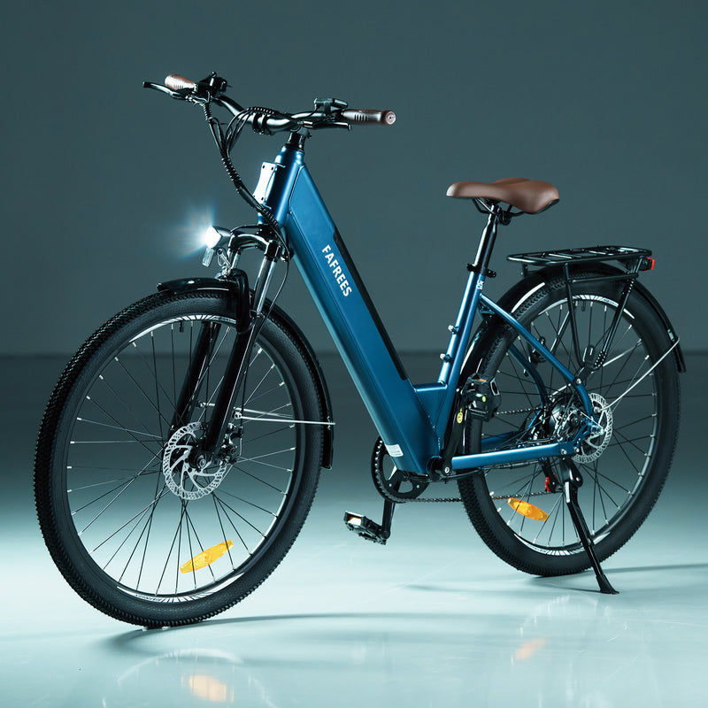 Das elegante und komfortable F28 Pro kombiniert einen 250-W-Motor, einen herausnehmbaren 36-V-Akku mit 16 Ah und einen Rahmen mit Durchstieg für einfachen Zugang und sanfte Unterstützung.