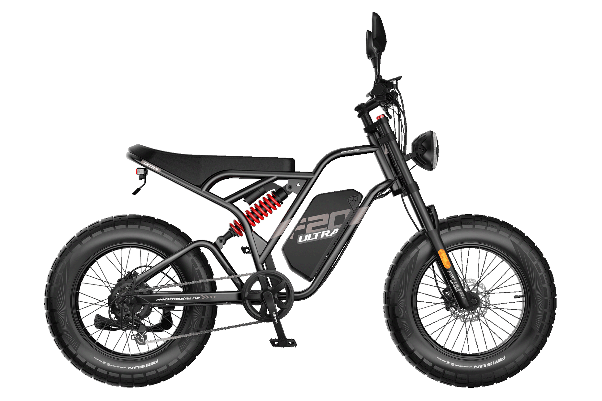 Unleash bold power with the F20 ULTRA — a 750W motor, 25Ah LG battery, and 20×5.0" fat tires deliver unmatched speed and freedom. With dual suspension and moto styling, it’s built to thrill every ride.