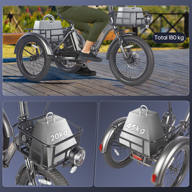 3-Rad-Stabilität, Alltagstauglichkeit. Der F20 Mate verfügt über einen 500-W-Motor, dicke 20×3,0-Zoll-Reifen und einen stabilen hinteren Korb