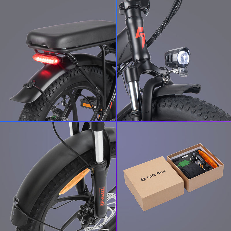 Das effiziente und vielseitige F20 verfügt über einen faltbaren Durchstiegsrahmen, 3,0-Zoll-Fettreifen und eine 16-Ah-Batterie in Automobilqualität.